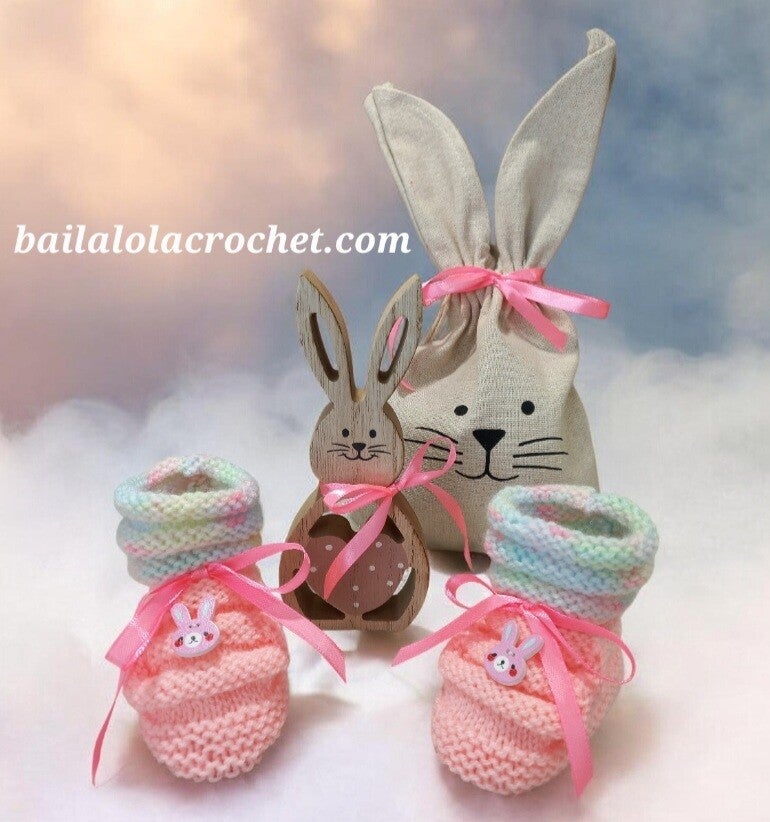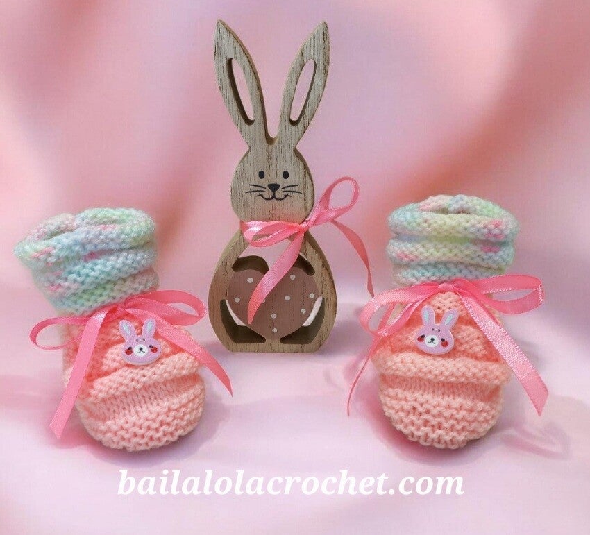 Pour votre bébé, voici de jolis petits chaussons aux doux tons pastels, tricotés main avec une laine spéciale layette OEKO TEX et ornés d'un petit bouton en bois.